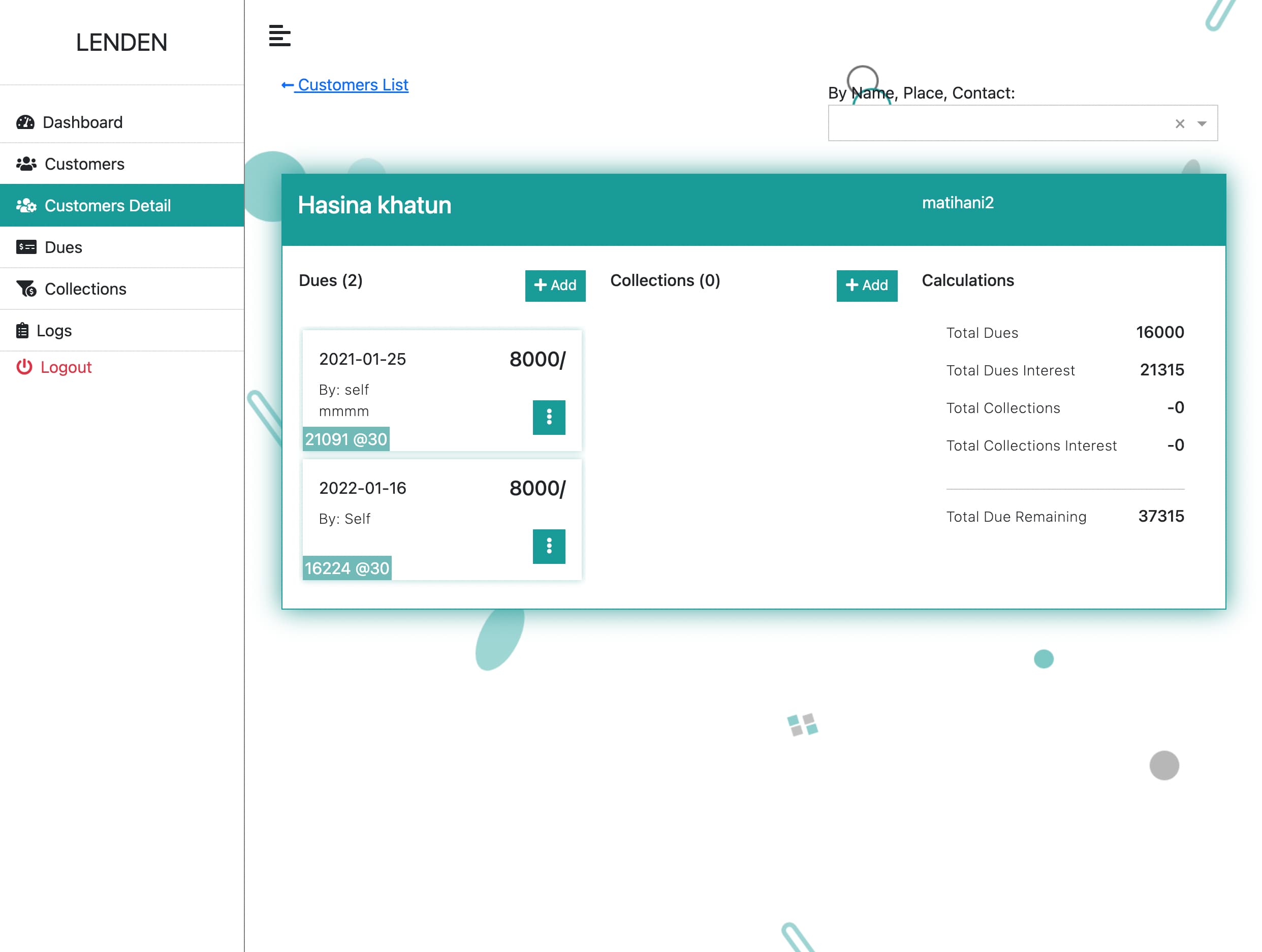 Angular 12 – typescript application, I developed Lenden to address a specific problem in a particular region. The application includes basic authentication, tracks and calculates amounts for transactions, and features action logging and monitoring for better transparency and accountability. (Please reach out for credentials)