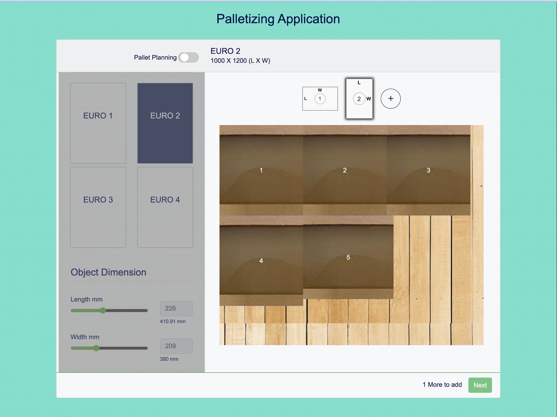 - Box Placement: Boxes are continuously added to the pallet based on the dimensions and available space.